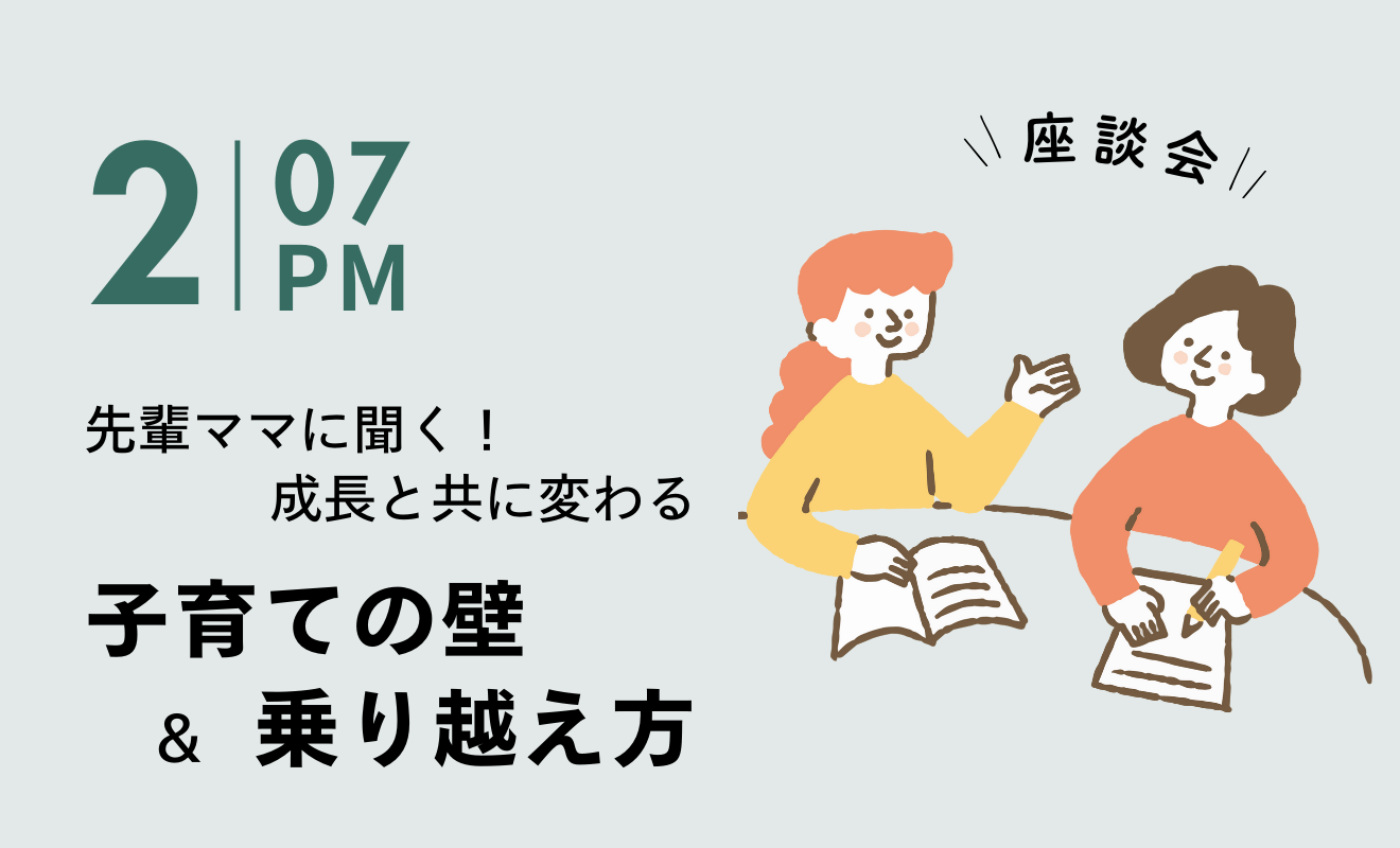 2/7(土)14時~15時半『座談会 先輩ママに聞く!成長と共に変わる 子育ての壁&乗り越え方』