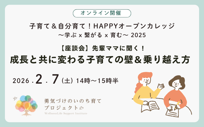 2025年度の第11回目の講座は、2/7(土)14時〜15時半『座談会 先輩ママに聞く!成長と共に変わる 子育ての壁&乗り越え方』を開催します。