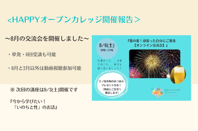 2022年度に開講しご好評をいただいていた、学びと繋がりの場『子育て&自分育て!HAPPYオープンカレッジ』。4年目となる202…